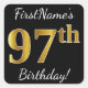 Pegatina Cuadrada Black, Faux Gold 97th Birthday + Custom Name