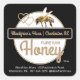 Pegatina Cuadrada Black Gold Modern Script Honey con abeja de miel