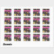 Haz tu propio pegatina personalizado para una divertida y elegante celebración de fiestas de 30 años. Este pegatina se coordina con invitaciones coincidentes. El diseño de colorido arte original de pasteles de cumpleaños y quequitos al azar, la palabra arte "feliz cumpleaños", globos, velas, tiras y puntos sobre un fondo negro. Una tira rosa fucsia se personaliza con un nombre y las palabras de personalizable "30 cumpleaños". Fácil de personalizar para otros eventos. Este arte original es de Phyllis Dobbs.