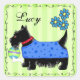 Pegatina Cuadrada Black Scottie Terrier Dog Name Personalized Green