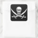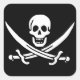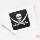 Pegatina Cuadrada Blanco, Bandera Pirata Calico Jack, Calavera y Cuc