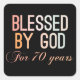 Colorful 70th birthday design in decorative ornamental style. Funny sarcastic 70 years old saying quote with phase Blessed by God for 70 Years. Perfect Happy Birthday Gift idea for Dad, mom, friend, grandma, grandpa, uncle and aunt.