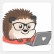 Pegatina Cuadrada Blogueo Cuto Geeky Hedgehog En Una Laptop