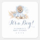 Pegatina Cuadrada Blue Boho Teddy Bear Boy Baby Shower