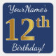 Pegatina Cuadrada Blue, Faux Gold 12th Birthday + Custom Name