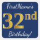 Pegatina Cuadrada Blue, Faux Gold 32nd Birthday + Nombre personaliza