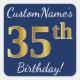 Pegatina Cuadrada Blue, Faux Gold 35th Birthday + Custom Name