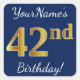 Pegatina Cuadrada Blue, Faux Gold 42nd Birthday + Nombre personaliza
