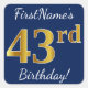 Pegatina Cuadrada Blue, Faux Gold 43rd Birthday + Custom Name