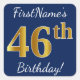 Pegatina Cuadrada Blue, Faux Gold 46th Birthday + Custom Name