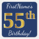Pegatina Cuadrada Blue, Faux Gold 55th Birthday + Custom Name