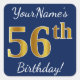 Pegatina Cuadrada Blue, Faux Gold 56th Birthday + Custom Name