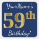 Pegatina Cuadrada Blue, Faux Gold 59th Birthday + Custom Name