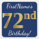 Pegatina Cuadrada Blue, Faux Gold 72nd Birthday + Nombre personaliza