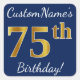 Pegatina Cuadrada Blue, Faux Gold 75th Birthday + Custom Name