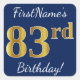 Pegatina Cuadrada Blue, Faux Gold 83rd Birthday + Custom Name