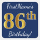 Pegatina Cuadrada Blue, Faux Gold 86th Birthday + Custom Name