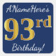 Pegatina Cuadrada Blue, Faux Gold 93rd Birthday + Custom Name