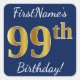 Pegatina Cuadrada Blue, Faux Gold 99th Birthday + Custom Name