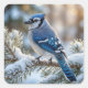 Pegatina Cuadrada Blue Jay Perched On a Snowy Pine