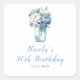 Pegatina Cuadrada Blue Peonies Mason Jar Birthday