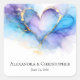 Modern abstract wedding sticker featuring a blue, purple, and gold watercolor heart with a soft alcohol ink effect.