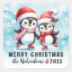 Pegatina Cuadrada Blue Red Cute Penguins Personalizado Feliz Navidad