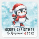 Pegatina Cuadrada Blue Red Fun Pingüino Skater Feliz Navidad