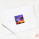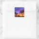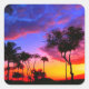 Pegatina Cuadrada Blue Red Sunset Exotic Hawaiian Beach Palm Trees