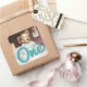 Pegatina Cuadrada Blue Sketch One Boy Photo 1er cumpleaños fiesta a