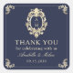 Elegante boda azul marino y barroco dorado gracias pegatina con diseño monocasco y marco ornamental. Perfecto para sellar sobres, bolsas de favores o para empaquetar regalos de boda. Personalizado con los nombres de la pareja y la fecha boda, este pegatina cuadrado le agrega un toque de lujo atemporal a su celebración. Un bonito detalle que se coordina con la suite boda barroca azul marino.