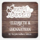 Pegatina Cuadrada Boda Campestre en Madera Rústica Recién Casados