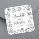 Pegatinas De Boda Quirky Dibujadas A Mano Personalizadas. Estos divertidos y juguetones stickers de bodas cuadradas incluyen extravagantes ilustraciones de doodle alrededor del diseño, incluyendo una torre de champán, torta boda, bola de disco, corazones, campanas bodas, anillos, cámaras y más. Los nombres de la novia y del novio, así como la fecha del boda, se muestran de forma elegante bajo esta caprichosa obra de arte en una mezcla de escritura manuscrita y tipos de letra simples, ofreciendo un aspecto único y elegante. Personalizable completo, este diseño le permite ajustar el texto y la disposición para que coincida con su tema boda. Perfecto para sellar sobres, decorar favores o agregar un toque personal a su papelería boda, estos pegatinas le aportan un elemento divertido y encantador a su celebración.