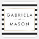Boda de rayas clásicas imita al pegatina cuadrado de Relieve metalizado dorado con un fondo clásico de rayas blancas y negras. Estos elegantes pegatinas de boda presentan un elegante borde de Relieve metalizado de oro falso enmarcando sus nombres en la tipografía de la moda. Diseñado por Thisisnotme©