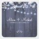 Pegatina Cuadrada Boda de corazones de granero rústico con copas de