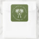 Pegatina Cuadrada Boda de destino tropical de palmeras nubladas