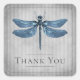 Pegatina Cuadrada Boda de la libélula con joyas azules Gracias