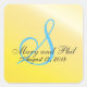 Pegatina Cuadrada Boda de monograma amarillo limón