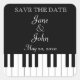 Pegatina Cuadrada Boda de música de teclado de piano Guardar la fech