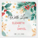 Pegatina Cuadrada Boda de Navidad en acuarela con acebo