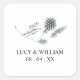 Pegatina Cuadrada Boda floral botánico de cardo azul gracias