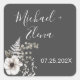 Pegatina Cuadrada Boda floral gris oscuro y blanco