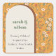 Pegatina Cuadrada Boda floral retro groovy arco naranja amarillo