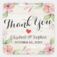 Pegatina Cuadrada Boda Gracias Flores De Acuarela Madera Rústica