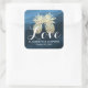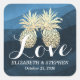 Pegatina Cuadrada Boda Gracias Moda Azul Oro Piña Pareja