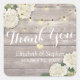 Pegatina Cuadrada Boda Gracias Rustic Wood Floral String Lights