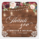Pegatina Cuadrada Boda Mason Jar, floral de borgoña de madera rústic