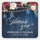 Pegatina Cuadrada Boda Mason Jar, floral de borgoña de madera rústic
