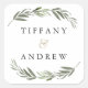 Pegatina Cuadrada Boda moderno de la hoja verde acuarela