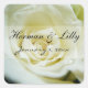 Pegatina Cuadrada Boda personalizado de la rosa blanca